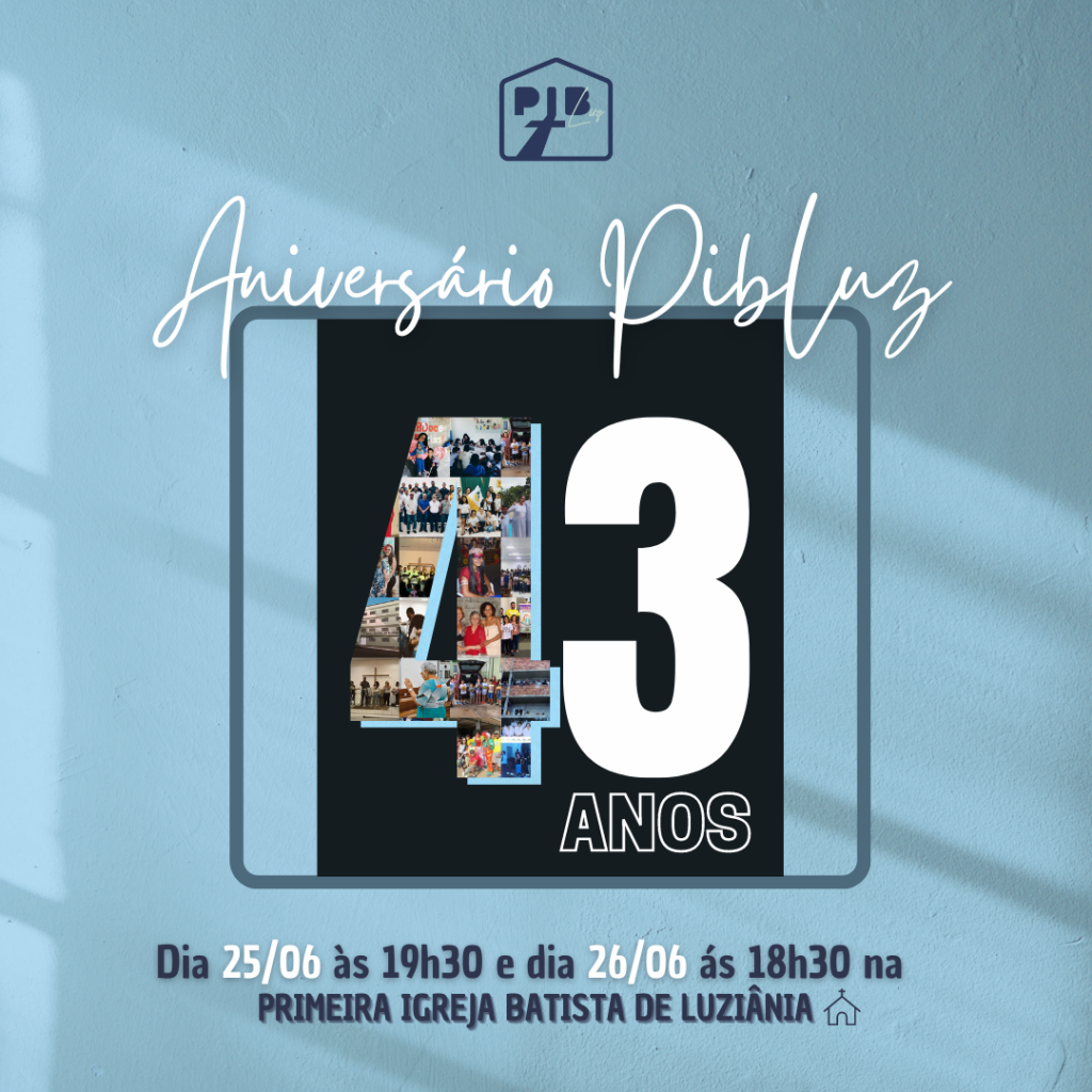 As festas de aniversário de 43 anos da Primeira Igreja Batista de Luziânia (Pibluz) valorizaram a importância da missão do cristão, o sentido da sua vida. Ou seja, andar com Deus e espalhar a boa notícia da salvação a todas as pessoas ao seu redor. O amor de Jesus derramado na cruz e a evangelização devem ser marcas de uma igreja com foco na missão.